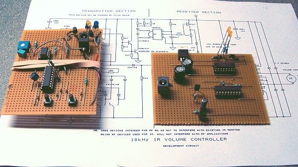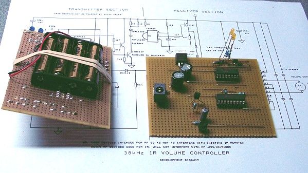 Remote Control working! The remote control is a proprietary in-house design. The simplest implementation I've been able to think up, it runs in "hardware" rather than "software" simply because the learning curve in software is too much for my "grey cells" right now. I guess the functions could be put on a programmable IC (PIC) but that would only save one IC and whilst ever there's the appropriate chips on sale, I'd rather put my time toward SQ than showing off. The designs lend themselves to considerable miniaturisation so don't worry about the remote being the size of a brick. It will be remote control size! ![]() The development board now separated into transmit and receive sections. Transmit board on left. Receiver board on right. ![]() And another photo showing the transmitter battery holder (4 x AAA cells). So how well does it work? I placed the receiver on a shelf in the back room, and from the filing cabinet 6 metres away no hesitation. Aiming the transmitter 90 degrees off axis... still worked. Aiming at ceiling... still worked. Aiming in the opposite direction... still worked. Aiming at the floor under my desk... didn't work, but that was asking for a miracle anyway. To find out the actual range would mean testing it outdoors but as it's raining.... With just about everything tested and working it's PCB and case design time... stay tuned! |