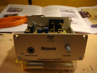 and the the instructions are well done. I regularly design and build my own stuff (digital, so I'm in awe of Graham's analogue expertise of course) therefore my experiences may not be the best to share but, for what they're worth, here are a few hints. The manual doesn't have a "what you'll need' section, which is fair enough for the group the kit is aimed at. I ended up using a 15W iron with 0.7mm solder (but used 1.2mm solder for the large tags), a pair of side-cutters, a metal hacksaw, small metal file, metric ruler, cross-head screwdriver bits and small flat-head screwdriver (for the pot control). Also a small hammer and metal punch (to help make electrical contact with the case as described in the manual - but people may be able to use other things they have to hand at that point). A solder-sucker may also be useful in case of mistakes. I would say that a multimeter is essential unless you have perfect eyesight (for resistor values) and are feeling particularly brave. With the resistors Graham supplies I'm sure there is no problem bending the resistor leads flush with the body so they lay 'tight' to the board. However, in the ancient days there was a nasty tendency for them to snap off if you did so. So, purely from force of habit and fear, I bent them a nails-width away the body. This had them standing very slightly proud of the surface. I've always done that anyway to allow air circulation and prevent hot-spots on the components (not important for this design as there's only the tiniest heat to dissipate). Before soldering in the pot and the LED, but after soldering in the phono jack, it is best to bend the LED leads as suggested and then, with the LED and pot in place, offer up the front panel. This allows you to see how far above the board surface the LED leads need to be and also to mark the pot spindle for length. You can then attack the pot spindle with a hacksaw and file down the sharp edges. I chopped off the anti-rotation spigot with side-cutters rather than use the pliers method in the manual - it was just easier do so in my case. Then solder the LED and pot in. The novo does sound good but I'll be leaving it to burn-in for a good while. Fortunately there's a Solo MC to listen to here while it does so. Alan |