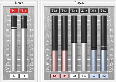 L1-R1=Subwoofers, L2-R2=Midrange, L3-R3=Tweeter dB readings