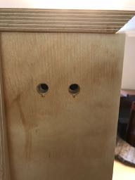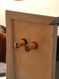 1st coat of Osmo Polyx Oil applied around speaker binding posts, though you would hardly know it, prior to assembly.